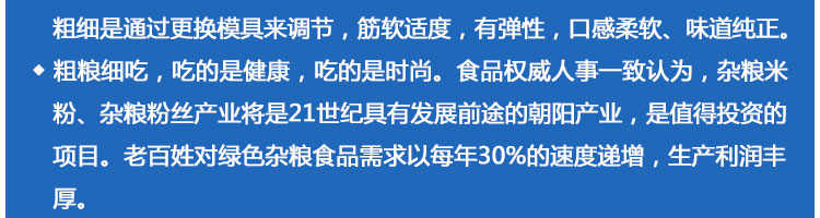SZ-400多功能米粉機(jī),生產(chǎn)多樣性可生產(chǎn)米粉、米線(xiàn)、粉絲、粉條、、年糕、玉米面條、各種雜糧粉絲、各種面條、雜糧面條、彩色面條以及以紅薯、玉米、大豆、蠶豆等制成淀粉為原料的等多種食品而且每種食品厚薄、粗細(xì)等規(guī)格可根據(jù)需要任意調(diào)整。