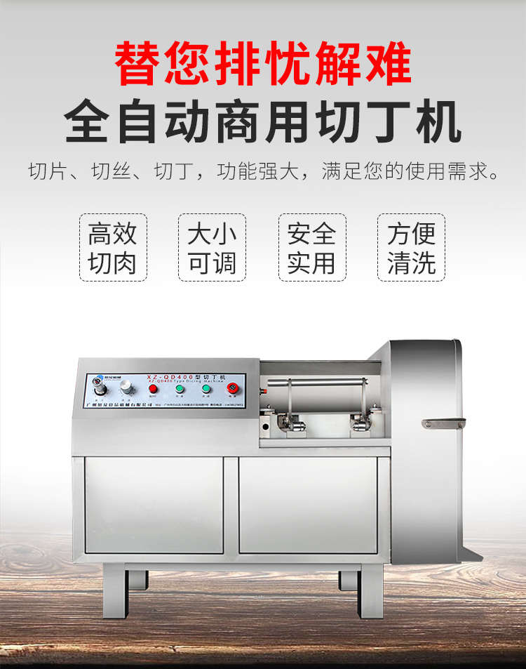 XZ-QD400切丁機(jī),替您排憂解難全自動(dòng)商用切丁機(jī)切片、切絲、切丁,功能強(qiáng)大,滿足您的使用需求。多功能&實(shí)用人即可操作,切出自己想要的規(guī)格,滿足商用多種需求。