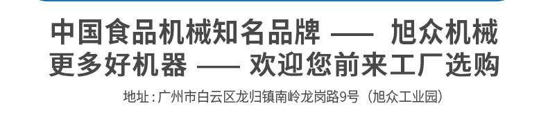 廣州旭眾食品機(jī)械有限公司是一家集科研開發(fā),生產(chǎn)設(shè)計,營銷服務(wù)為一體的現(xiàn)代化生產(chǎn)企業(yè)。現(xiàn)代化生產(chǎn)車間,精湛制造技術(shù),所產(chǎn)機(jī)械歷經(jīng)市場重重考驗,不斷贏得海內(nèi)外客戶的贊譽。